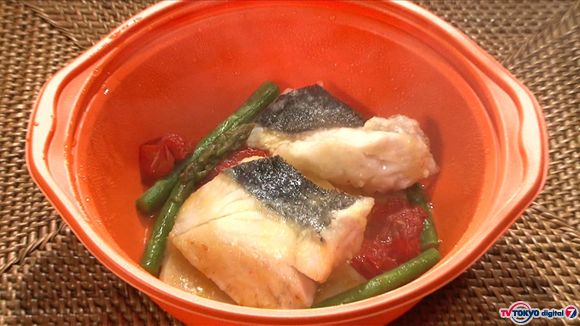 1、スズキは塩をふり10分ほど置いてからペーパーなどで水分を拭き取る。