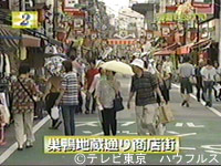 土日になると商店街の真ん中に椅子とテーブルを設置。夏場には商店街の人々が一斉に水を撒いてお客さんを迎…