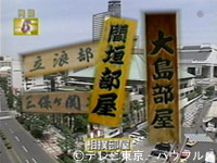 現在、両国には相撲部屋が18部屋あります。相撲部屋の顔と言えば大きな看板。