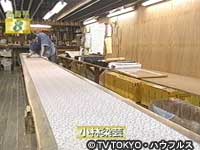 「江戸小紋」の特徴は、染めに細かい模様を切り抜いた型紙を使うこと。近寄ってよく見ると「一富士 二鷹 三茄子」や「成金と瓢箪」など、意味のある柄であることが分かります。またこちらには、オリジナルの「銘名小紋」という柄もあります。一見図柄のように見えますが、よく見ると名前が染め上げられているという粋な柄です。