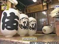 現在は5代目・上野三郎さんが、歌舞伎座をはじめ主だった劇場の提灯を作ります。作業は全て上野さん一人でやっているので、1日3個作るのがやっとです。また劇場の提灯は、非常に高い所に掛けられている為、下から見上げても読みやすいように文字は敢えて下に寄せて書かれています。提灯のひとつひとつに職人の魂が籠っているのです。