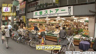 大山住民が商店街に来れば必ず立ち寄るというお店です。特に木曜日から土曜日の特売日が狙い目。取材した日は北海道産メロンがひと玉258円でした。あまりにもお客さんが多いため自転車整理専門のスタッフも配備。丸谷義男さんは自転車を並べながら呼び込みも頑張っています。