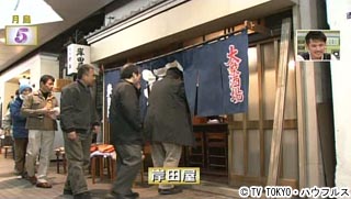 居酒屋。真冬でも店外に客がはみ出す程の大人気店です。お店の有名人は、ねじり鉢巻きがトレードマークのご…