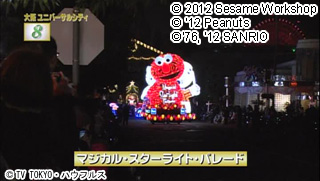 誰もが知るおとぎ話の世界。37台の巨大フロートが100人のエンターテイナーと共にパークを一周します。観賞の穴場は、16位でご紹介した「メルズ・ドライブイン」のテラス席(※)。比較的空いているうえ、席に座りながらゆったりと幻想的な光の世界に浸れます。