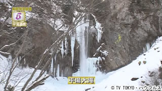高さ64m、幅6m。日本の滝百選にも数えられています。四季折々、豪快に流れ落ちる滝も、厳しい寒さが訪れると氷の芸術に変化。2013年2月15日からは「平湯大滝 結氷まつり」が開催され、鮮やかです。