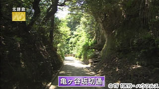 山を切り崩し通行を可能にした、鎌倉時代に造られた生活通路。当時の雰囲気を伝える道のひとつです。亀も登…