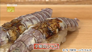 柴漁港、通称・小柴の名物。味も香りもよいと評判で、江戸前寿司の名店も絶賛。漁獲高が激減し禁漁したこともあったが、漁師達はその間、資源保護に努め、昨年、ようやく漁の復活に至った。