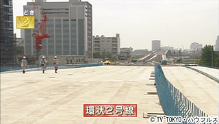 都心部と東京オリンピック会場をつなぐ大動脈となる道路。神田佐久間町から有明まで続く道路で、現在、汐留から豊洲までの区間が建設中。勝鬨橋が架かってから74年ぶりになる、新しい橋も設置された。
