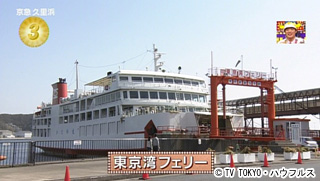 久里浜港から千葉県富津市の金谷港までをおよそ40分で結ぶフェリー。早朝には、もはや定番の光景、ゴルファーの行列ができる。館山方面へは、アクアラインから行くより近くて安上がり。