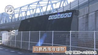 昭和42年に造られた堤防。荒川の河口に位置し、川と海に面した西葛西。この堤防が、災害から街の人を守ってきたことから、住民の願いで一部が残され、歴史を伝える。