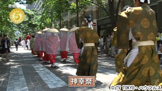 山王祭 最大の儀式。装束を身にまとった神職や氏子が都心を一日かけて巡り、歴史絵巻を再現。列の長さは300メートル、総勢500人にも及ぶ。4つの団体に分かれ、およそ9時間かけて巡行する。今年からはGPSを使い、行列の位置が分かるスマートフォンのアプリを作成。4つの団体が今それぞれどこにいるのか、一目で知ることができる。