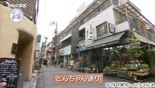 ティーンが闊歩する竹下通りとは対照的に、昭和のムードが漂う渋い通り。正式名は「原宿通り」だが、昭和の人達には「とんちゃん通り」と呼ばれている。「とんちゃん」とは、昭和38年からこの通りにあった居酒屋のこと。人気デザイナー達が集まるサロンのようなお店だった。「とんちゃん」は平成5年に閉店したが、通りには昭和のお店が数多残っている。