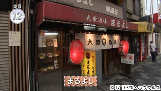 昭和27年創業。平日は昼の3時、土曜は昼の2時からコの字のカウンターが埋まる大衆酒場。常連さんがこぞって注文するのが“きゃべ玉”。普通のサラダ油で普通のキャベツを強火で炒め、卵2つを絡めるだけ。味付けは普通の塩こしょうのみというごくシンプルな料理。店主もなぜ人気なのか分からないというが、理屈抜きで美味しい名物料理。
