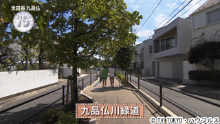 淨眞寺の北側を流れていた九品仏川。その川が暗渠化されてできた。淨眞寺から緑が丘駅付近まで、およそ1.7kmの遊歩道。自由が丘ではお洒落な雰囲気を醸しているが、九品仏はのんびりした感じ。地元で憩いの散歩道として親しまれている。