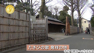 住宅街の一角に、昭和の趣を残した垣根がある。実はこちらは、童謡「たきびの歌」が生まれた場所。この近所に住んでいた詩人、巽 聖歌(たつみ せいか)はこの辺りでの散歩中に詩情を膨らませたといわれている。垣根の向こう側は一般のお宅。主人は8年に1度メンテナンスを行い、貴重な風景遺産を守っている。