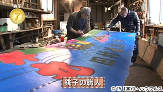 銚子で200年以上続く染物工場。8代目と9代目の親子が作り続けているのは、色鮮やかで勇ましい縁起物、大漁旗。