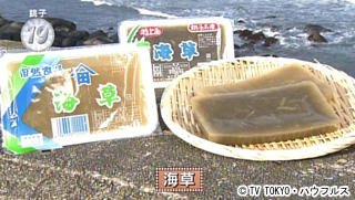 銚子のローカルフード。コトジツノマタという海藻を煮込んで固めた、ゼリー状のもの。この街の超定番郷土食で、専門店まである。地元の方は、ネギとカツオ節、七味、醤油をたっぷりかけて味わう。