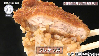 富岡名物のかつ丼。卵とじではなく、ソースかつ丼でもない。とんかつを甘辛の醤油ダレにくぐらせたもの。富岡を中心に県西部では、かつ丼といえばタレかつ丼のこと。大正期から親しまれている。そして、桐生や前橋など県東部では、ソースかつ丼が名物。ウスターがベースのソースにどっぷり浸すタイプが人気。そして、県北部と南東部は、玉子とじタイプ。高崎は、タレカツ丼の名店も、 ソースカツ丼の人気店もある。そして、もちろん卵とじタイプもある、かつ丼の混在エリア。 群馬は地域ごとに名物かつ丼は違えど、どれもが魅力的。