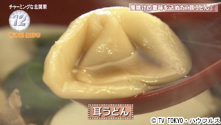佐野のご当地うどん。「耳」とは、うどんの生地をくるりと丸めて作ったもの。実はこれ、悪魔の耳を見立てたもので、魔除けの意味が込められた、歴史ある郷土料理。