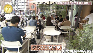 表参道には、まるでパリのごとくオープンテラスがあるお店がたくさん。少し寒くても開放的なテラス席で寛ぐ人が多い。