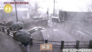 野沢のシンボル。麻釜とは、5つの源泉からなる野沢温泉の湯元。村の宝であるここは、朝夕、村の人達が野菜…