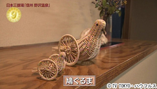 農家の冬の副業として始まった伝統工芸。あけびのツルを編み込み、手提げかごなどを作る。その技で作る玩具…