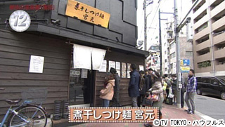 蒲田一行列ができるというつけ麺屋さん。2年前にオープンするや否やすぐさま人気店に。スープに使う煮干しは千葉県九十九里産。脂肪分の少ない上質の煮干しを、1日に20キロ、鶏ガラスープとともに炊き上げる。一杯のつけ汁に煮干し30尾は入るという濃厚なスープと、自家製の極太麺。見た目ほどくどくないこの味を求め、「ニボラー」は今日もまた並ぶ。