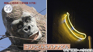 太子堂のランドマーク。茶沢通りを下北沢方面へと進むと現れるのが、巨大なゴリラが目印の「ゴリラビル」。夜になるとその背後で光るのがゴリラの好物「バナナ」のネオン。バナナ輝くこちらのビルは2016年オープン。夜のランドマーク「バナナビル」として注目されている。