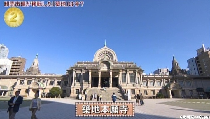 築地のシンボル。本堂は国の重要文化財。このお寺を建てるため、築地が生まれた。インド様式の本堂は1934年に建築家、伊東忠太によって設計。