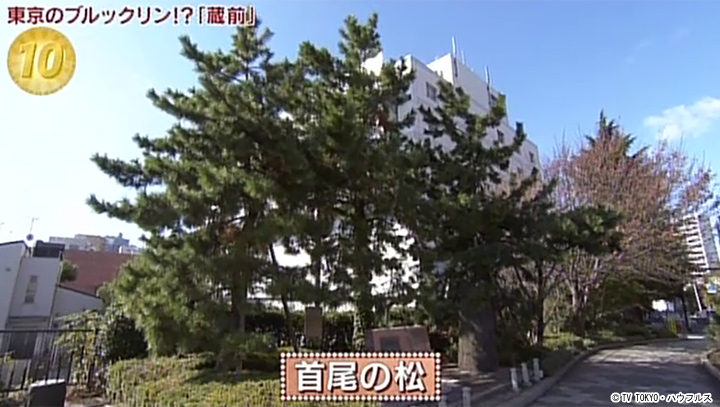 蔵前橋のすぐ近くにある、江戸時代から受け継がれる松。現在で7代目。かつて蔵前にあった幕府の米蔵。その隅田川沿いにあった松は、吉原へ通う船の目印になっていた。遊び終えた江戸っ子たちが松の陰で、〝遊女との首尾〟を語り合ったことからその名がついたといわれる。