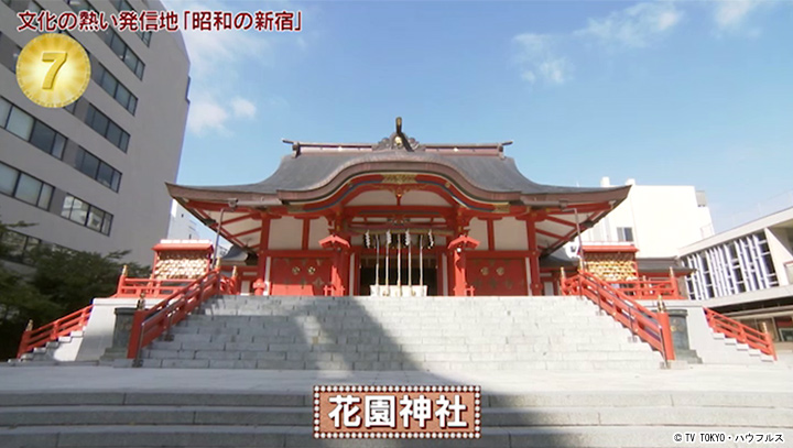 街の鎮守様。昭和42年、境内で始まったのが状況劇場の紅テント公演。アングラでセンセーショナルな演出が大きな話題となった。