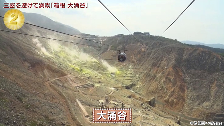 箱根のシンボル。立ち入り規制も一部解除され、間近まで行けるようになった。大涌谷の名物といえば、黒たまご。およそ80度の温泉池に45分浸けるとこの色に。1つ食べれば7年寿命が延びるといわれる。噴火の警戒レベルがあがり、製造を中断していた黒たまごも復活。これからも、大涌谷とともに箱根を盛り上げる。