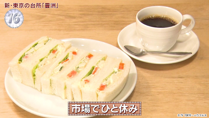『センリ軒』の隣にある、食のプロに愛される喫茶店。築地時代から通い続ける常連さんの人気なのは「カレースパ」。ありそうでいて、探すとなかなか無いB級グルメ。スパゲッティにスパイシーな自家製カレーをたっぷりON。これが、プロの市場めし。