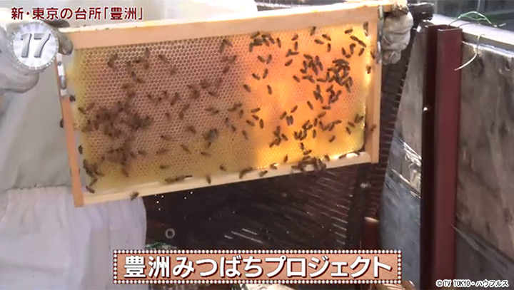 昭和24年から続く下町風情の商店街。そのとあるビルの屋上で、なんと、ミツバチを飼っている。商店街の有志が協力し採取したハチミツは豊洲の新しい名物となっている。非加熱のハチミツは、くどさもなくフルーティな味わいと評判。「ペル・エ・メル」など商店街の6店舗で販売中。
