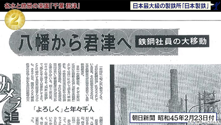 昭和40年、福岡の八幡製鉄(現・日本製鉄)が君津に製鉄所を作ると、日本国内から多くの人が移り住み、君津は大きく発展。日本屈指の鉄の街となった。