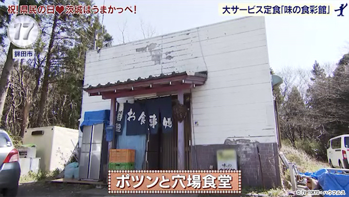 見頃を迎える紅葉の名所・花貫渓谷へ向かう途中にポツンとある渋い食堂。人気はニンニクが効いた「焼肉定食」。良質なうなぎが入荷した時だけの限定品「うな重」も人気。
