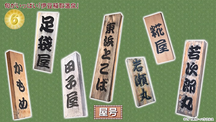 稲取は同じ名字を持つ人が多いため、住民たちは「屋号」で互いを呼び合う。屋号は先祖のあだ名や職業がそのまま用いられることが多く、約700種類はあるという。街では「こめや」という名の床屋さんや「石油屋」という名の洋服店など、商売を変えても、昔からの屋号を使う店名も多い。
