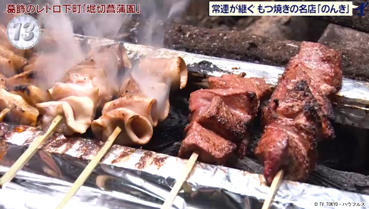 創業から65年、地元で人気のもつ焼きの名店。名物は初代から伝わるシロ。3時間以上茹で、ホロホロになったシロに辛めのタレがよく合う。ご主人はかつしかFMの番組枠を買い取り、お店の常連のお笑い芸人 バッドボーイズの清人さんと一緒に番組MCを担当している。