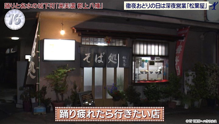 大正2年創業のおそばやさん。「徹夜おどり」開催日は午前0時まで延長営業している。名物はかつお出汁と豚骨スープを合わせた醤油らーめんに、エビ天がトッピングされた、その名も「天ぷら中華」。踊り疲れた深夜に、元気の出てくる一杯。