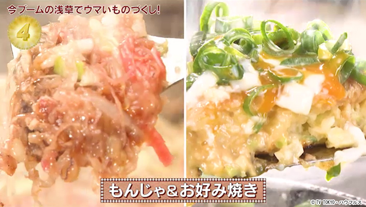 目の前で作られるもんじゃやお好み焼きは、外国人観光客をも魅了する、浅草には欠かせない味。 【つ…