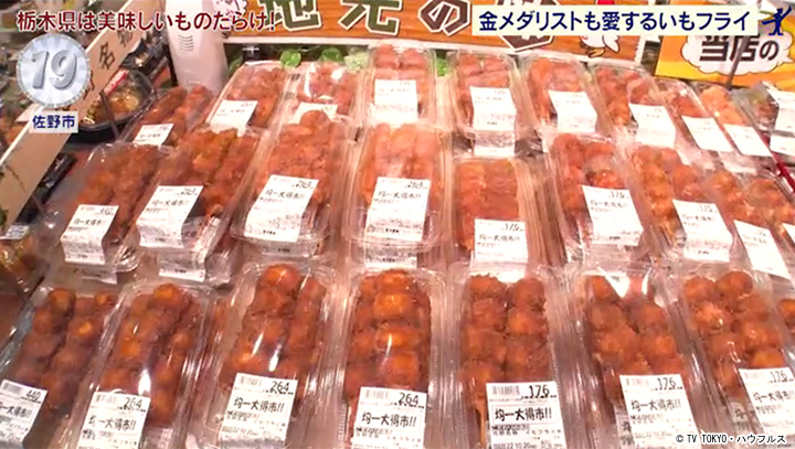 茹でたジャガイモを串に刺し、パン粉をまぶして揚げた下野市や佐野市のご当地フード。地元のスーパーなどでも売られている。