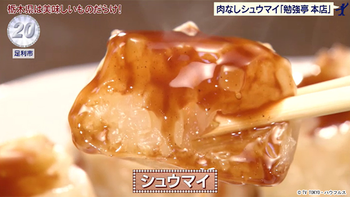 名物のシュウマイの中身には肉が入っておらず、玉ねぎのみじん切りに片栗粉をまぶしたものが入っている。戦後の食糧難の頃の足利市に根付いたご当地シュウマイ。プヨプヨとした食感が特徴で、中濃ソースをかけて食べるのが流儀。