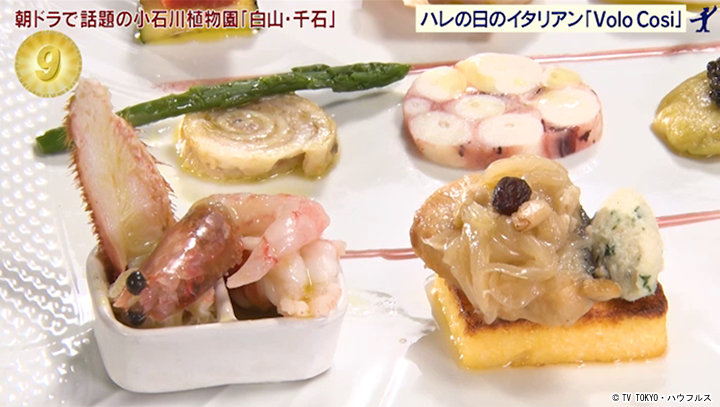 星付きレストランで修行したシェフによる北イタリア料理が楽しめる。本場イタリアと同じように会話を楽しみながら食事してほしいという想いからコースの前菜の品数は豊富。スペシャリテのラヴィオリはミラノの星付きレストラン「サドレル」でパスタシェフを任された際に習得したシェフ思い出の品。