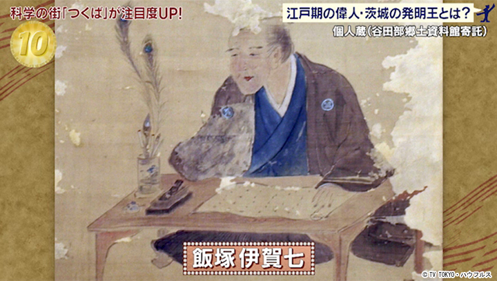 つくば出身の江戸時代の発明家。太鼓や笛で村人に時刻を知らせるカラクリ時計や距離を計測する十間輪などを作った。また、伊能忠敬よりも早く測量を行い、地元の谷田部地区の地図を製作した。