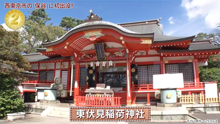 昭和4年創建された京都の伏見稲荷大社の珍しい分社。神社の創建に伴い、最寄駅や地名は「東伏見」に改められた。境内には京都と同じく幾重にも連なる赤い鳥居があり、「新東京百景」の一つに数えられる。