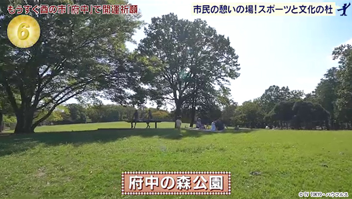 緑溢れる市民憩いの場。テニスコートなどのスポーツ施設も充実している。府中市は運動場などが多いスポーツの街でもあり、府中市民球場では読売ジャイアンツ女子チームが練習している。また府中第六小学校を拠点とするのが全国大会に何度も出場している強豪チーム「府ロクサッカークラブ」。澤穂希さんもこのクラブに所属していた。