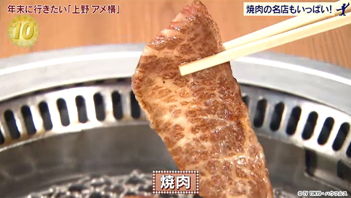 アメ横は焼肉の激戦区。昭和38年創業の「上野太昌園」や、昭和32年創業の「焼肉陽山道」など、名店が点在している。