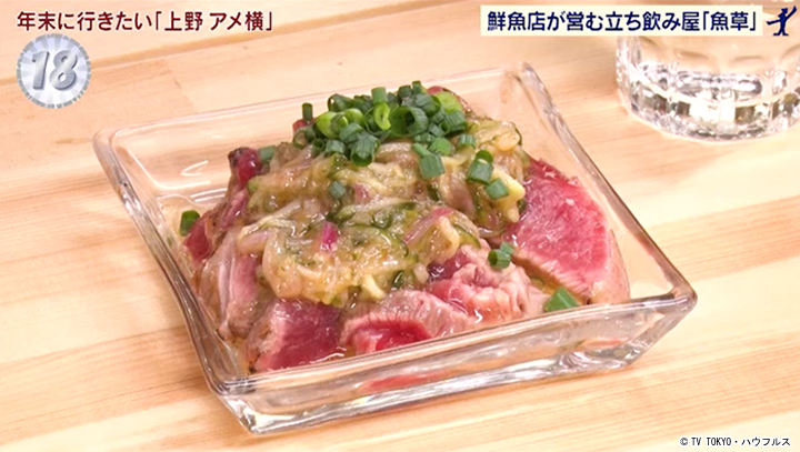 若い世代の間でアメ横での立ち飲みがトレンドに。激戦区ゆえ、安くて美味しいお店が数多。中でも行列ができる人気の立ち飲み店が「魚草」。もとは鮮魚店のため安くて美味しい海鮮つまみが大充実。
