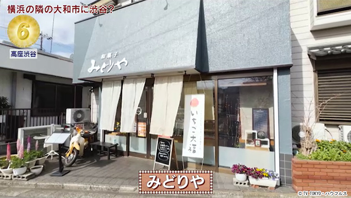 昭和41年創業の和菓子店。名物はいちご大福。いちごのサイズによって7段階の大きさに分かれている。海老名の宮崎農園の紅ほっぺを使ったジャンボは縦8cmもあり、ボリューム満点。