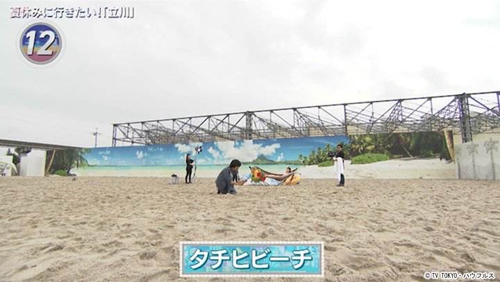 海が遠い多摩地区の人たちにとっては、ありがたいビーチ。海は書き割りだが、ベタつかない砂が敷いてあり、砂遊びも快適にできる。ビーチの横にはバーベキュー場もある。